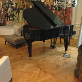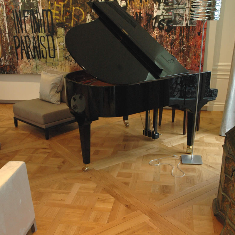 Le parquet Versailles est à l'origine, comme son nom l'indique, un type de parquet commandé au XVII siècle par le roi Soleil composé de cadres en bois rempli par des bandes diagonales en son centre.Composé de Chêne ou d'Orme, deux bois abondant et se ressemblant par ailleurs, ces parquets se trouvent aujourd'hui sous forme de parquet massif mais également en parquet contrecollé.Votre choix devrait fluctuer en fonction du passage attendu dans vos espaces.Indémodable, raffiné, élégant, chic, le parquet Versailles est souvent fourni par dalles de 1m2. Il sera mis en valeur dans les espaces minimalistes, peu encombrés, avec hauts plafonds et grandes fenêtres.Contactez-nous pour plus d'informations sur les parquets Versailles !
